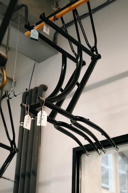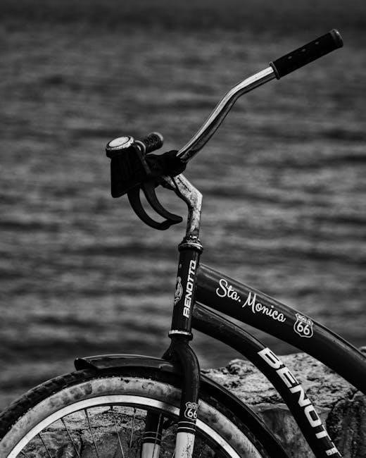 Bike geometry refers to the measurements and angles of a bike’s frame, which significantly influence how it rides and fits. Key factors include wheelbase, head tube angle, seat tube angle, and standover height. These measurements determine stability, maneuverability, and comfort. For example, a longer wheelbase improves stability but may reduce agility, while a steeper head tube angle enhances handling for road bikes. Seat tube angle affects pedaling efficiency, and standover height ensures safe clearance. Understanding these aspects helps riders choose a frame size that aligns with their riding style and body proportions. Different bike types (road, mountain, hybrid) have distinct geometries, so matching your needs to the right geometry ensures optimal fit and performance. Proper geometry alignment is crucial for comfort and efficiency.